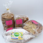inhoud: middel stol, speltcrackers, boerenbeschuit, roomboter, ½ suikerbrood